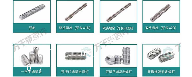 ①機器螺釘:因頭型和槽型不同而分成許多品種。頭型有圓柱頭、盤頭、沉頭和半沉頭幾種,頭部才形為開槽(一字材)和十字槽兩種。見GB65、GB67—69及GB818—820等。②緊定螺釘:緊定螺釘利用其尾端,起防止工件間相互